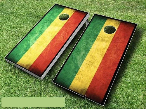 This top of the line Rhasta Flag Cornhole Set is sure to bring life to any party.