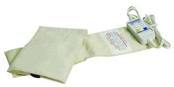 The electric pad provides moist heat without adding water (fomentation). The hand controller digitally adjusts temperature and treatment time. The pad includes a flannel cover.