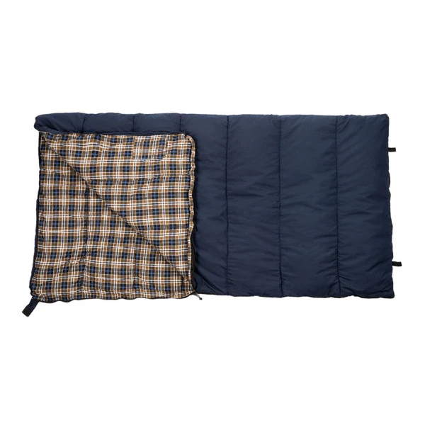 The Kamp-Rite King Size 0-Degree Sleeping Bag offers a 0-degree Fahrenheit comfort rating, making it a good choice for cold weather camping and indoor use. It has 6 pounds of polyester fill, a flannel liner and cotton outer shell for comfort. The bag itself measures 40 inches wide by 84 inches long to comfortably accommodate large adult sleepers, while its rectangular shape offers full body wiggle room. The king size sleeping bag is machine washable and includes a carry bag.